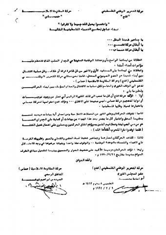 وثائق وبيانات حركة المقاومة الاسلامية حماس رقم - 122