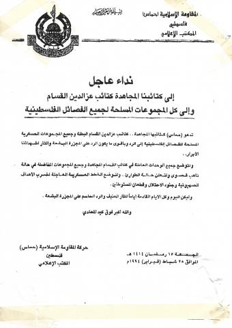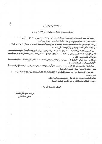 حول وثائق وبيانات حركة المقاومة الاسلامية حماس رقم - 121