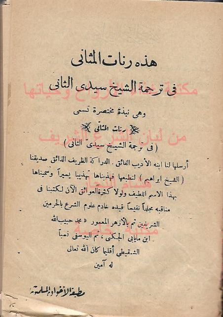 هذه رنات المثاني في ترجمة الشيخ سيدى الثاني