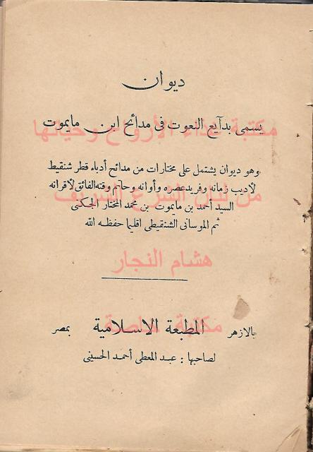 ديوان يسمى بدايع النعوت في مدائح ابن مايموت