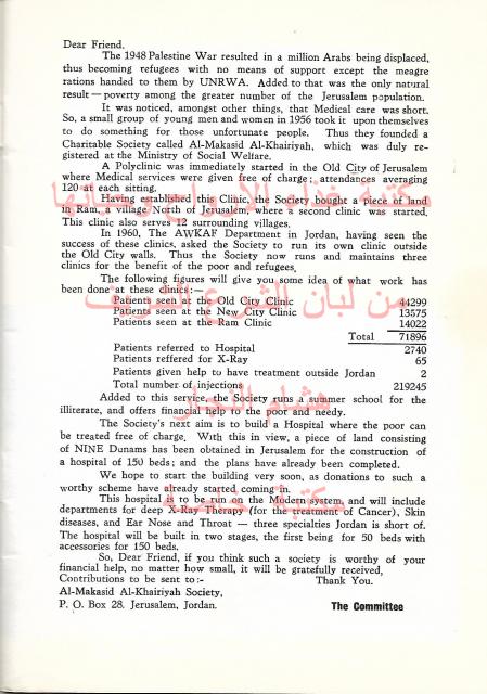 بيان جمعية المقاصد الخيرية بالقدس