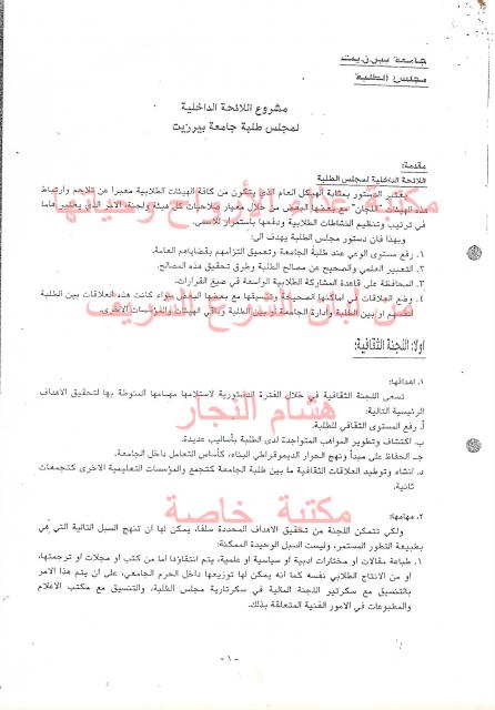 مشروع اللائحة الداخلية لمجلس طلبة جامعة بيرزيت