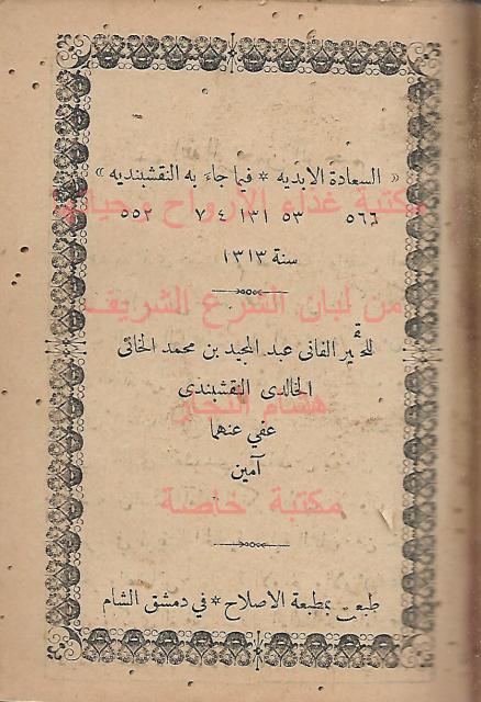 السعادة الابدية فيما جاء به النقشبندية