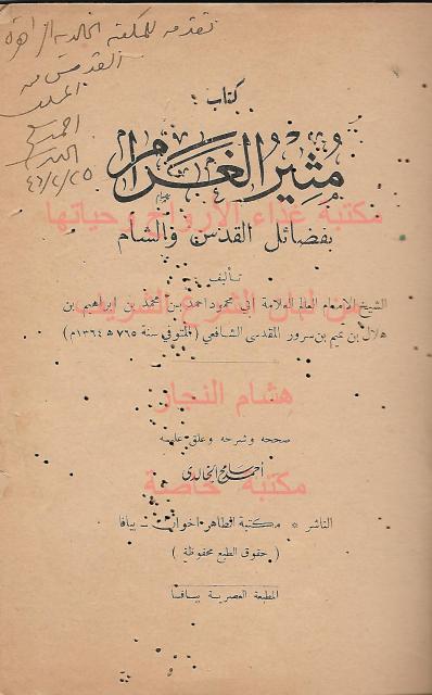 مثير الغرام بفضائل القدس والشام