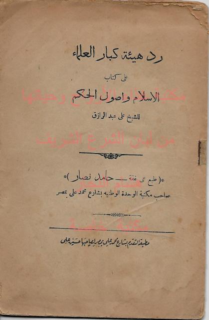 رد هيئة كبار العلماء على كتاب الاسلام واصول الحكم للشيخ علي عبد الراوق-1