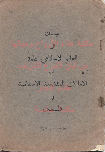 بيان الى العالم الاسلامي عامة عن الاماكن المقدسة الاسلامية في فلسطين