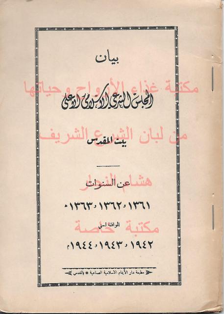 بيان المجلس الشرعي الاسلامي الاعلى بيت المقدس عن السنوات 1942+1943+1944