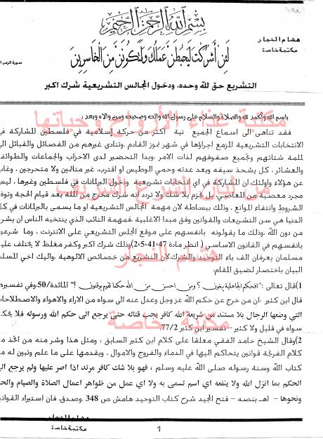 موقف السلفية في فلسطين من انتخابات المجلس التشريعي في فلسطين سنة 2006
