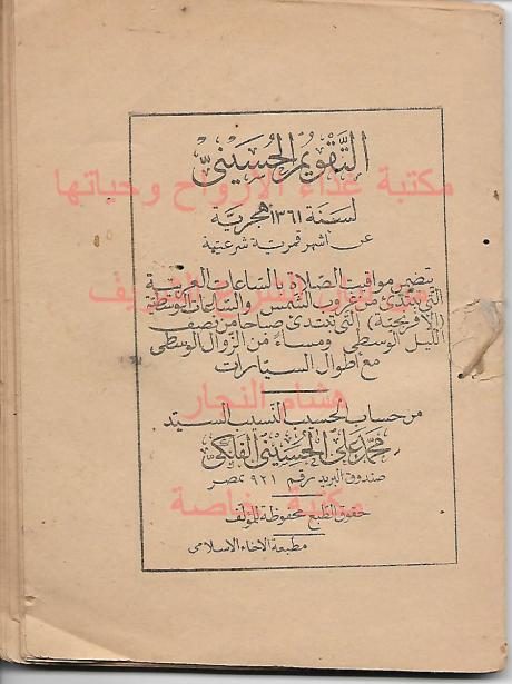 التقويم الحسيني لسنة 1361 - 1942