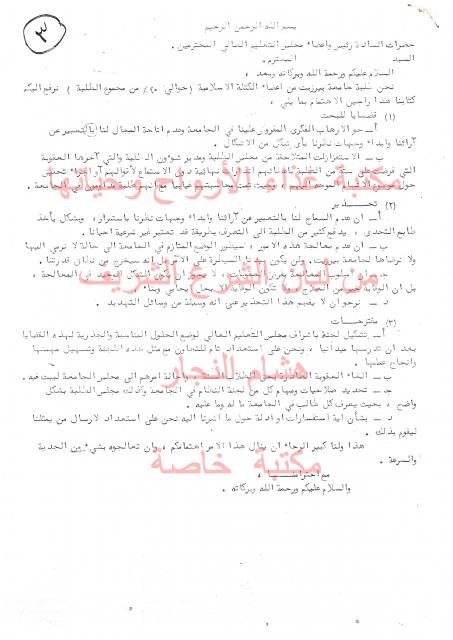 وثائق وبيانات الكتلة الأسلامية جامعة بير زيت - رقم - 10