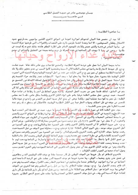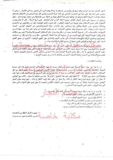 وثائق وبيانات جبهة العمل الطلابي التقدمية جامعة بير زيت - رقم - 3