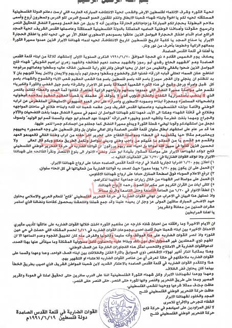 وثائق وبيانات حركة التحرير الوطني الفلسطيني فتح - رقم -1