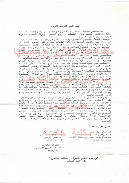 وثائق وبيانات حركة المقاومة الاسلامية حماس رقم -1