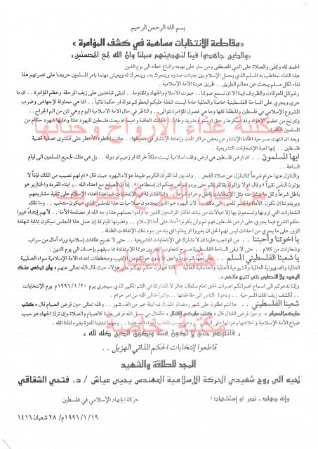 وثائق وبيانات حركة الجهاد الاسلامي رفم - 2