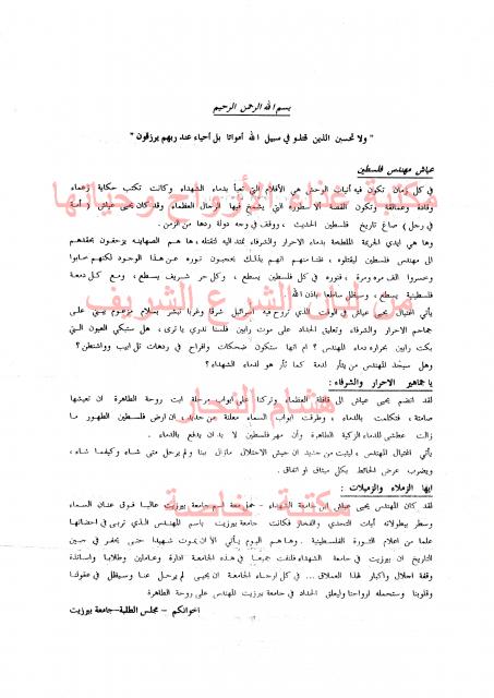 وثائق وبيانات الكتلة الأسلامية جامعة بير زيت - رقم - 23