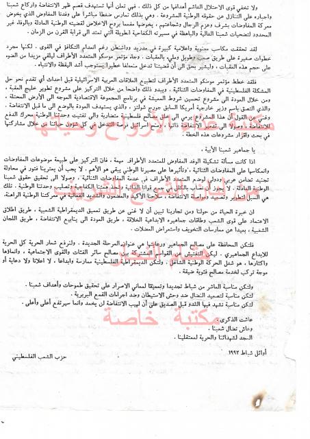 وثائق وبيانات حزب الشعب الفلسطيني رقم - 2