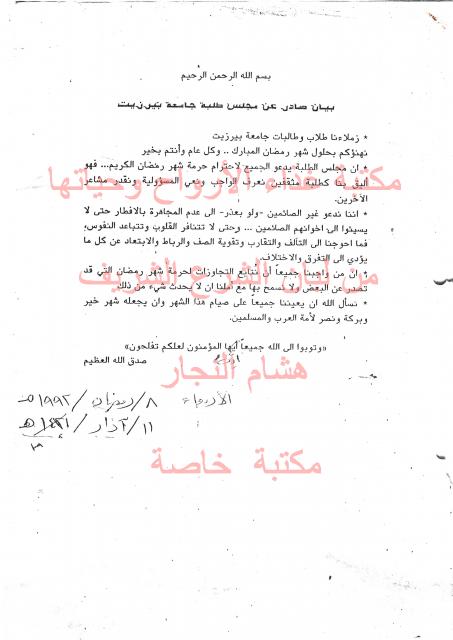 وثائق وبيانات مجلس طلبة بيرزيت رقم - 3