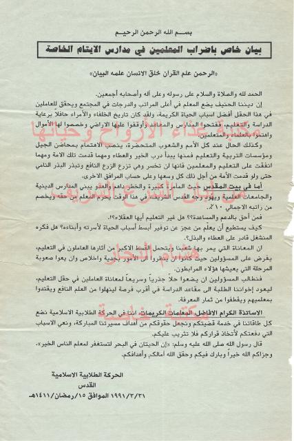 وثائق وبيانات الحركة الطلابية الأسلامية القدس