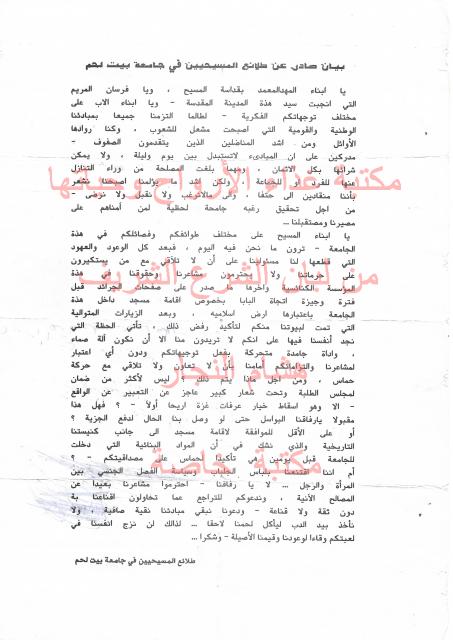 وثائق وبيانات جامعة بيت لحم رقم - 1