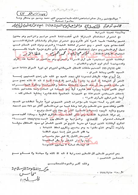 بيانات حركة المقاومة الأسلامية حماس - بيان رقم - 23
