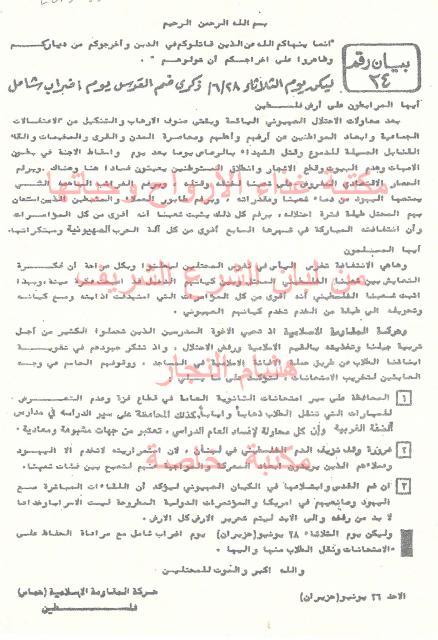 بيانات حركة المقاومة الأسلامية حماس - بيان رقم - 24