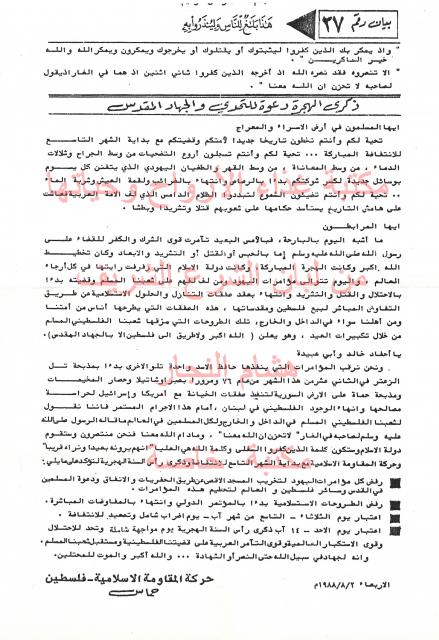 بيانات حركة المقاومة الأسلامية حماس - بيان رقم - 27