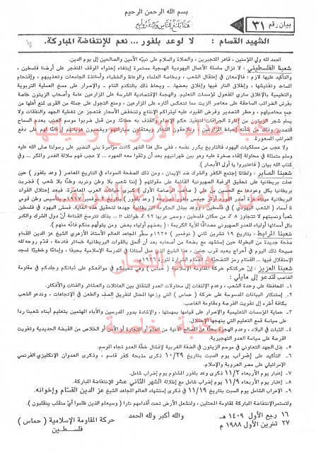 بيانات حركة المقاومة الأسلامية حماس - بيان رقم - 31