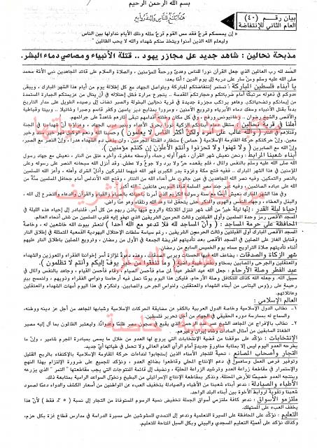 بيانات حركة المقاومة الأسلامية حماس - بيان رقم - 40