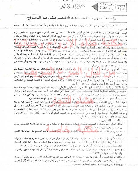 بيانات حركة المقاومة الأسلامية حماس - بيان رقم - 44