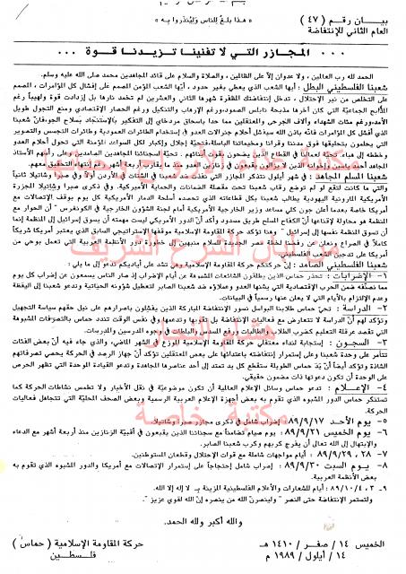 بيانات حركة المقاومة الأسلامية حماس - بيان رقم - 47