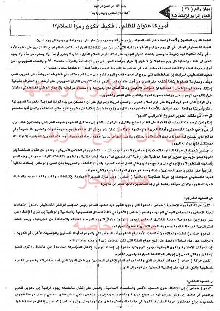 بيانات حركة المقاومة الأسلامية حماس - بيان رقم - 76