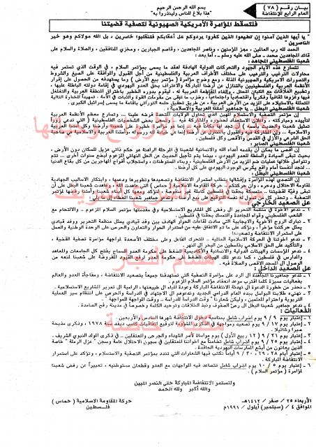 بيانات حركة المقاومة الأسلامية حماس - بيان رقم - 78