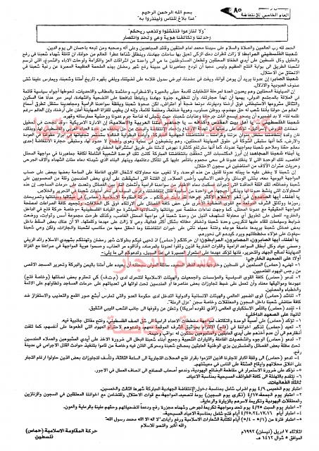 بيانات حركة المقاومة الأسلامية حماس - بيان رقم - 85