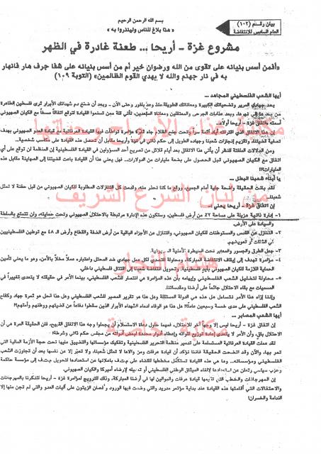 بيانات حركة المقاومة الأسلامية حماس - بيان رقم - 102