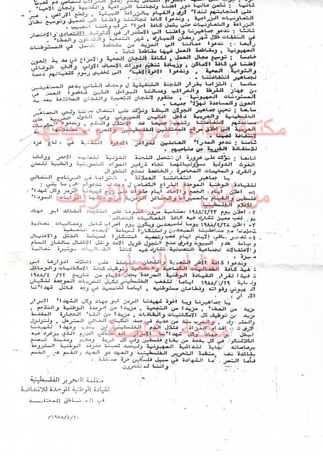 وثائق وبيانات القيادة الوطنية الموحدة للأنتفاضة