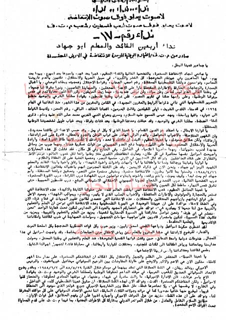 وثائق وبيانات القيادة الوطنية الموحدة للأنتفاضة