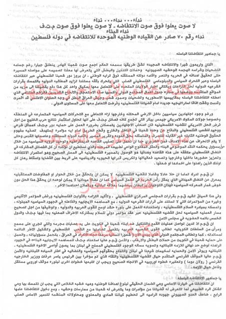 وثائق وبيانات القيادة الوطنية الموحدة للأنتفاضة