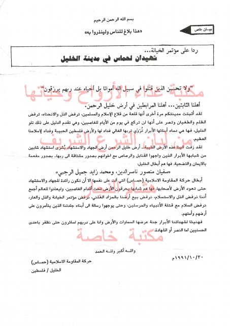وثائق وبيانات حركة المقاومة الاسلامية حماس رقم - 122