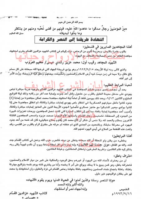 وثائق وبيانات كتائب الشهيد عز الدين القسام