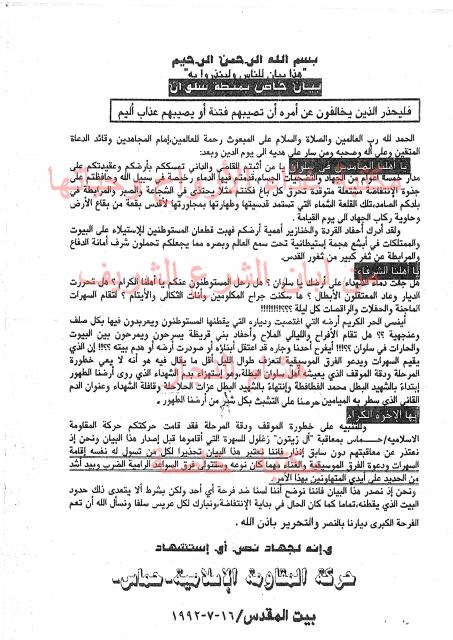 وثائق وبيانات حركة المقاومة الاسلامية حماس رقم - 125