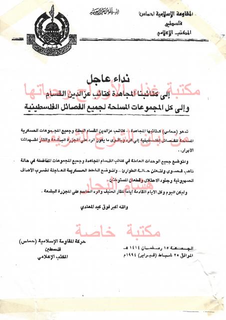 وثائق وبيانات حركة المقاومة الاسلامية حماس رقم - 130