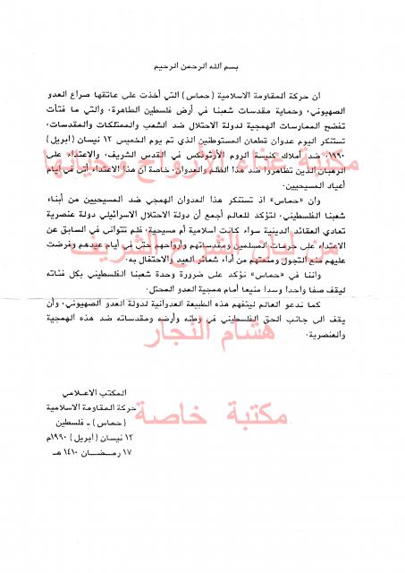 وثائق وبيانات حركة المقاومة الاسلامية حماس رقم - 148