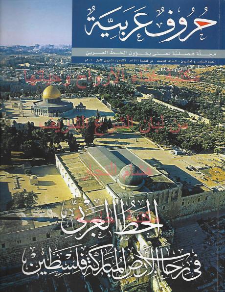 عدد خاص من مجلة حروف عربية عن فن الخط العربي في فلسطين -- عليه اهداء من الخطاط عبدالله عزة الى هشام اسماعيل النجار بتاريخ 21- 7 - 2016