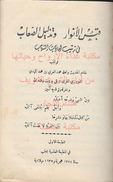 قبس الانوار وتذليل الصعاب في ترتيب احاديث الشهاب