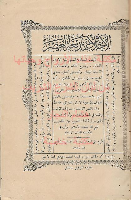 عليه اهداء الى الشخ محمد جمعه النجار من محمد سليم شخاشيرو الدمشقي