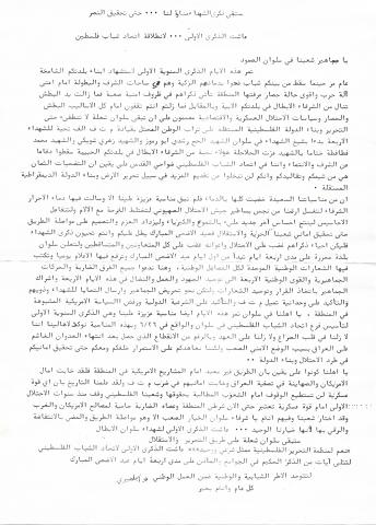 وثائق وبيانات منظمة التحرير الفلسطينية رفم - 1