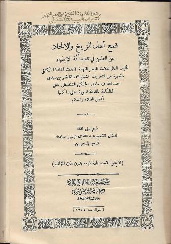 حول قمع اهل الزيغ والالحاد عن الطعن في تقليد أئمة الاجتهاد