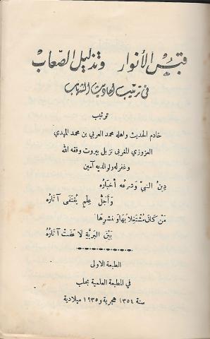 حول قبس الانوار وتذليل الصعاب في ترتيب احاديث الشهاب