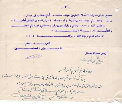 وثائق وبيانات جماعة الأخوان المسلمين في فلسطين رقم - 43