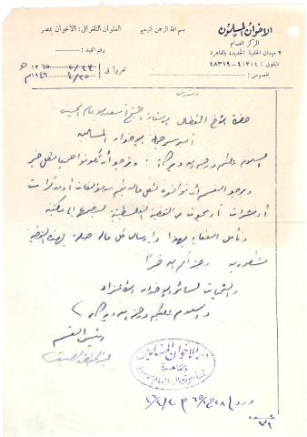 حول وثائق وبيانات جماعة الأخوان المسلمين في فلسطين رقم - 44